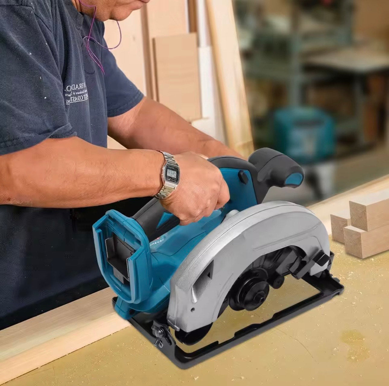 Snažna, praktična i bežična – aku kružna pila s dvije 42V litij-ionske baterije omogućuje neprekidan rad i savršenu preciznost pri rezanju. Idealna je za obradu drveta, ploča i drugih materijala u radionici ili na terenu.