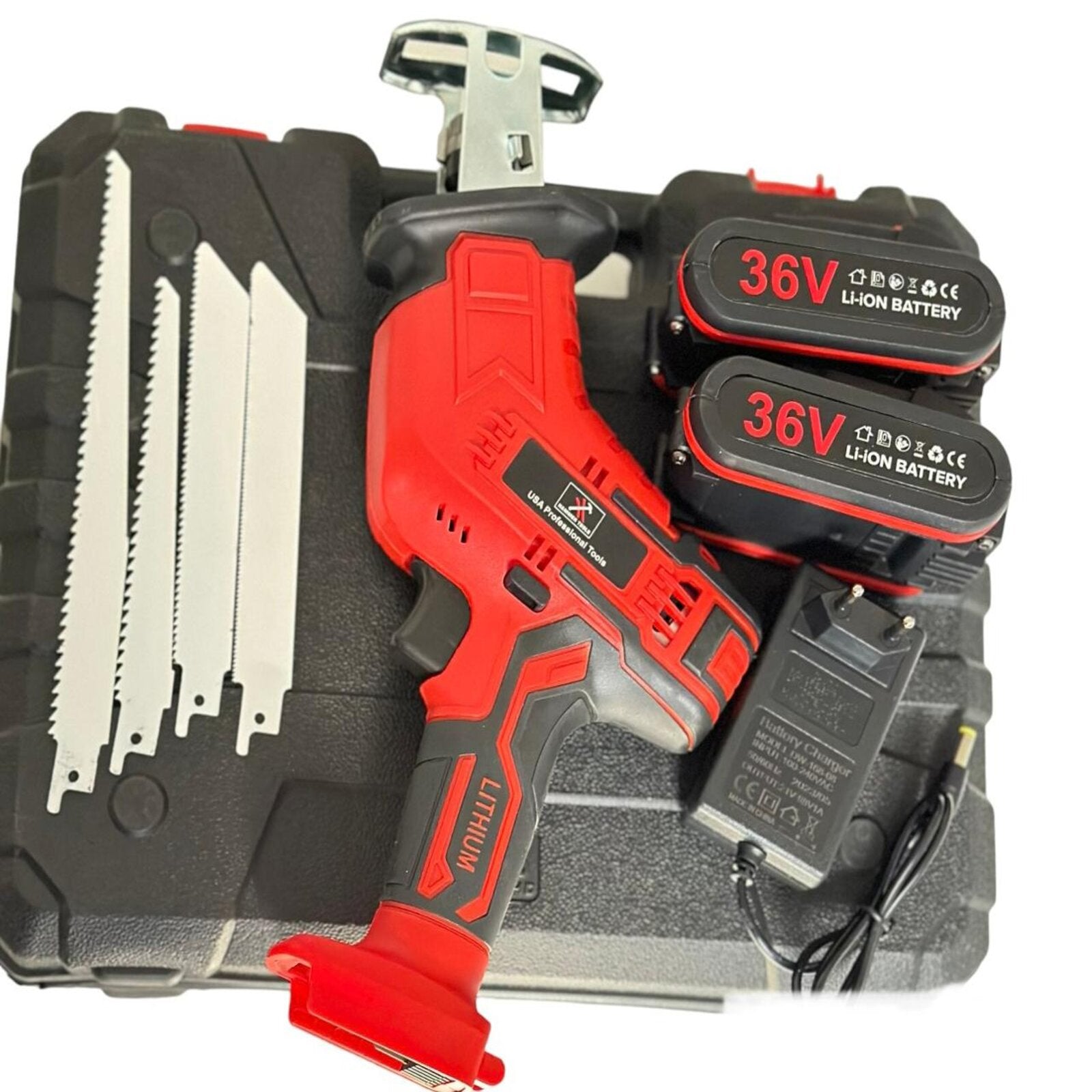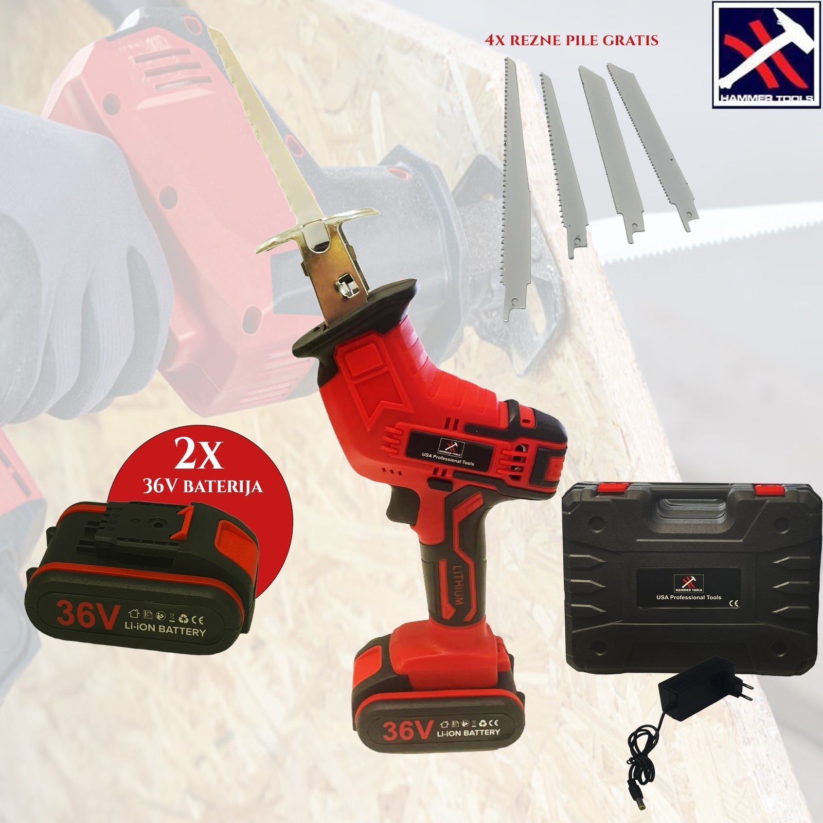 AKUMULÁTOROVÁ SHABLIVÁ PÍLA X2 AKUMULÁTORY SO 4 ZDARMA HRDZNÉ PÍLY KLADIVO