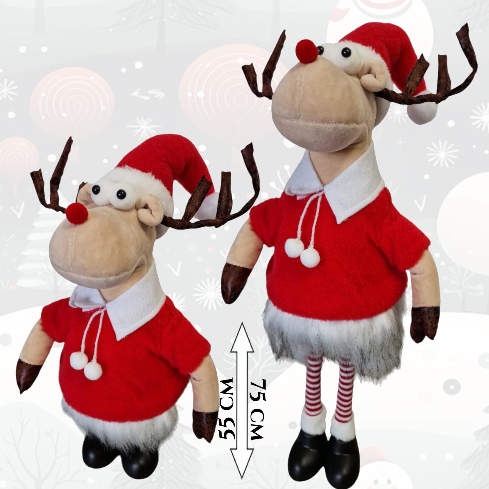 Tento vianočný sob vyrobený z látky dodá vášmu priestoru zvláštne čaro svojím roztomilým vzhľadom. Jeho veselý výraz a farby vnesú do vášho domova ducha Vianoc, vďaka čomu je ešte krajší a veselší.