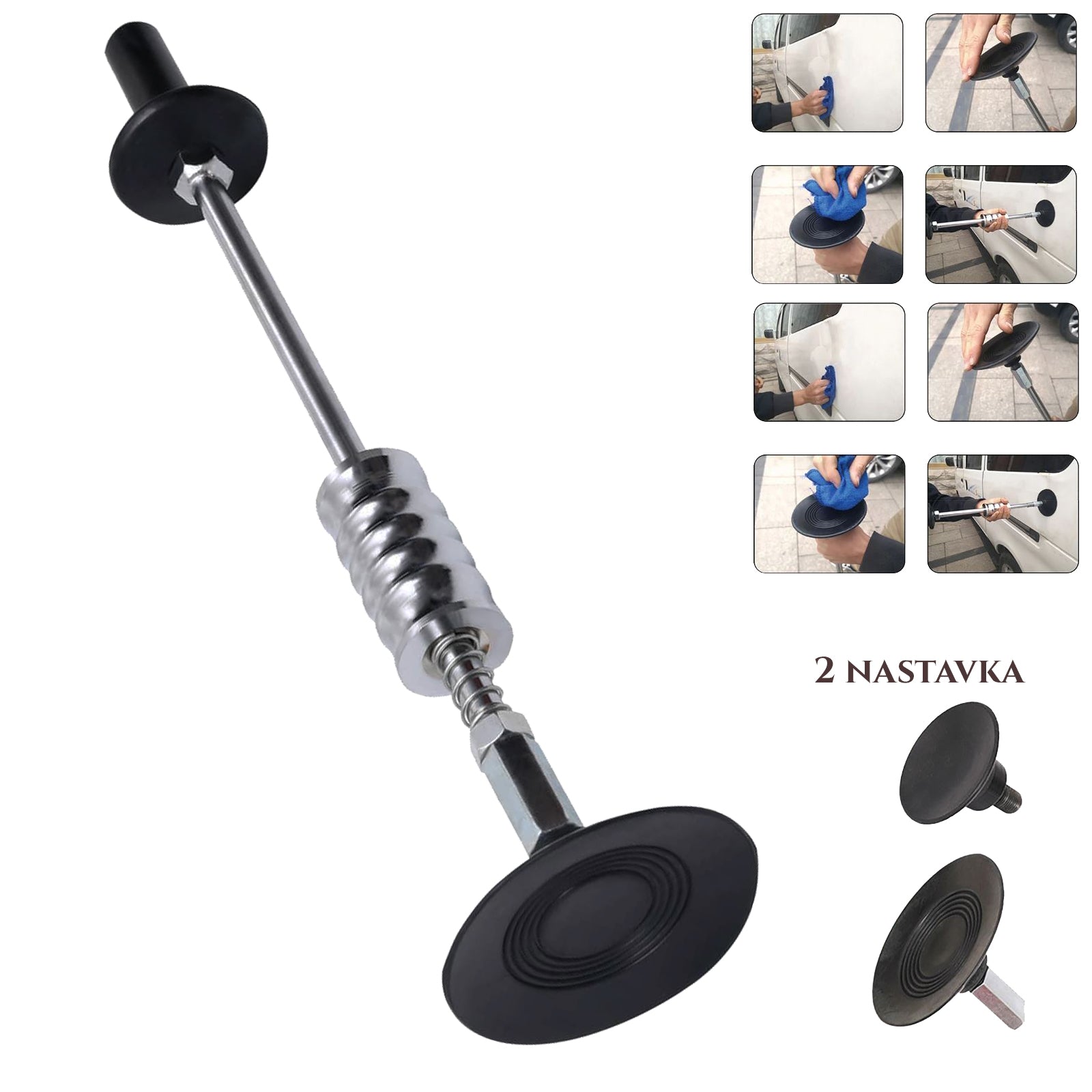 sada obsahuje sadu plastových vložiek, ktoré sa pred vytiahnutím nalepia na priehlbinys týmto nástrojom môžete opraviť preliačiny a poškodenia na aute a nie je potrebné žiadne lakovanie