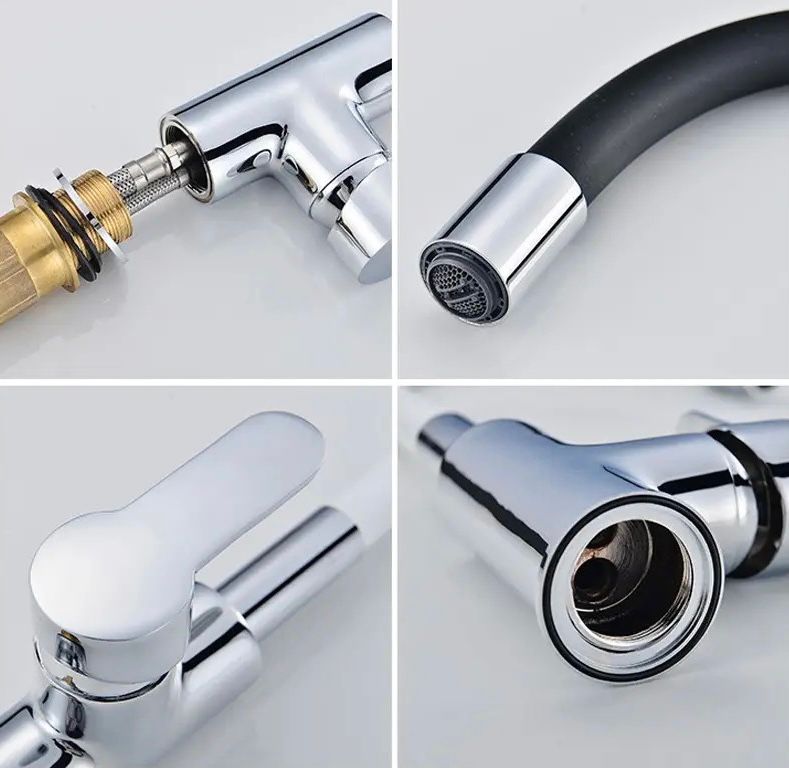 Vodovodné batérie ozdobia vašej kuchyne a vkusný dizajn drezových batérií s dlhým hrdlom zvýraznia vašu túžbu po krásnom a čistom vzhľade domácností a sviežosť priestoru svojimi zaoblenými líniami, flexibilitou matného šedého výkto. výtok a vykoy lesk chrómového vúču.