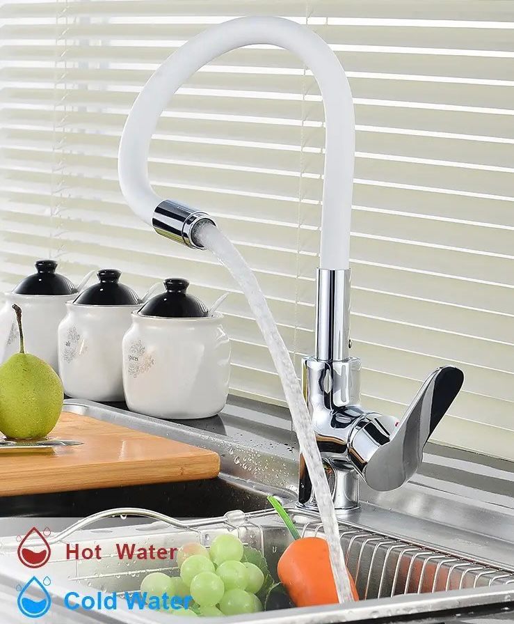 FARBA: Čierna, BielaVodovodné batérie ozdobia vašej kuchyne a vkusný dizajn drezových batérií s dlhým hrdlom zvýraznia vašu túžbu po krásnom a čistom vzhľade domácností a sviežosť priestoru svojimi zaoblenými líniami, flexibilitou matného šedého výkto. výtok a vykoy lesk chrómového vúču.