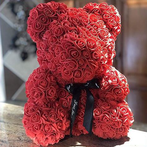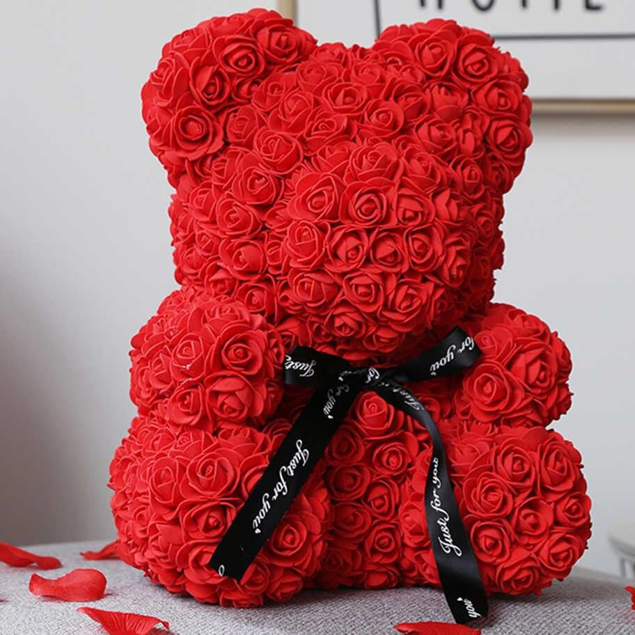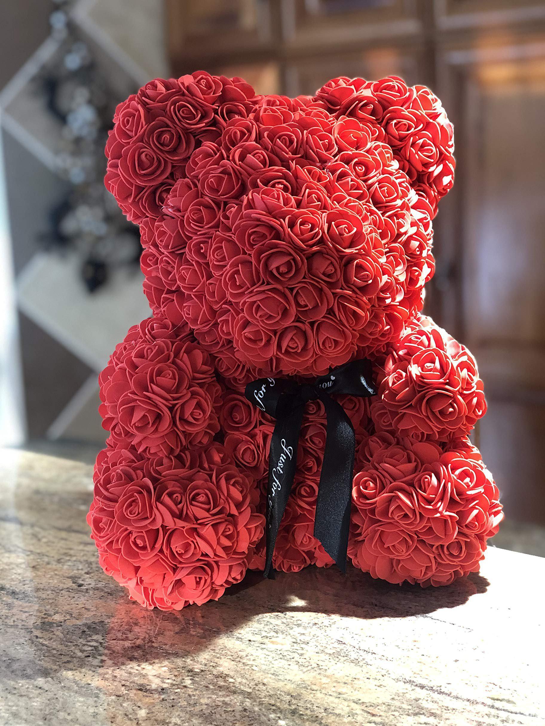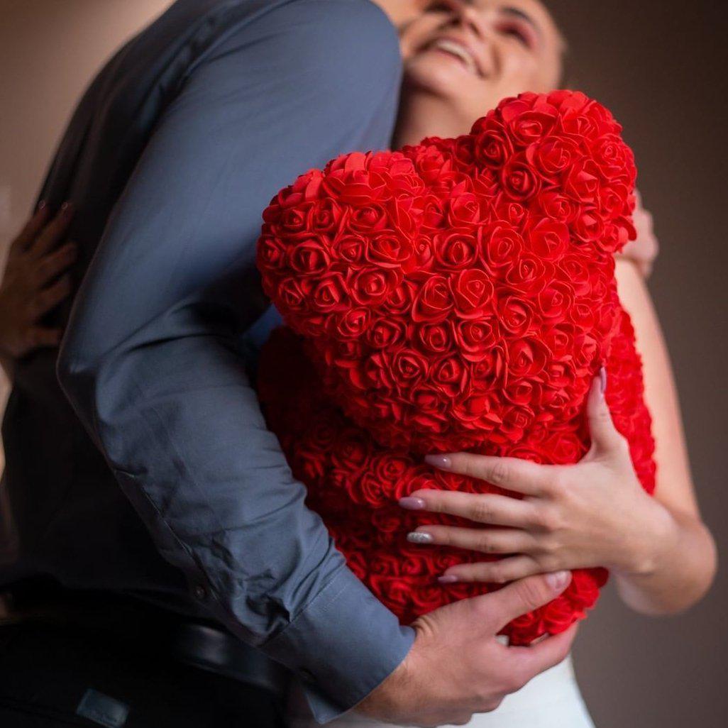 🥥 Medvedík vyrobený z viac ako 800 jemných syntetických ruží v romantickej červenej farbe.