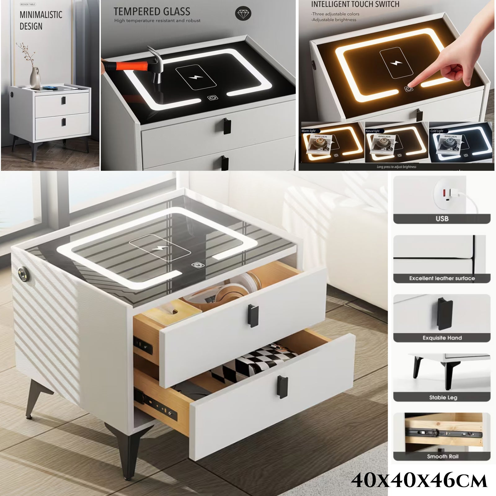 Zamišljajte večer bez kablova, pretrpanog ormarića i traženja punjača u mraku. Samo odložite mobitel na staklenu površinu, lagano dotaknite touch tipku i LED okvir pretvara Vašu spavaću sobu u ugodan, moderan ambijent.