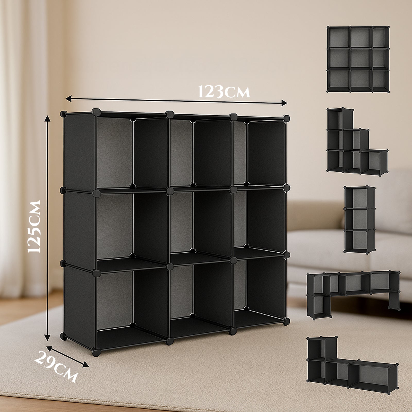 - 📚 9 prostranih kockastih pretinaca za knjige, cipele, igračke ili dekorativne predmete.