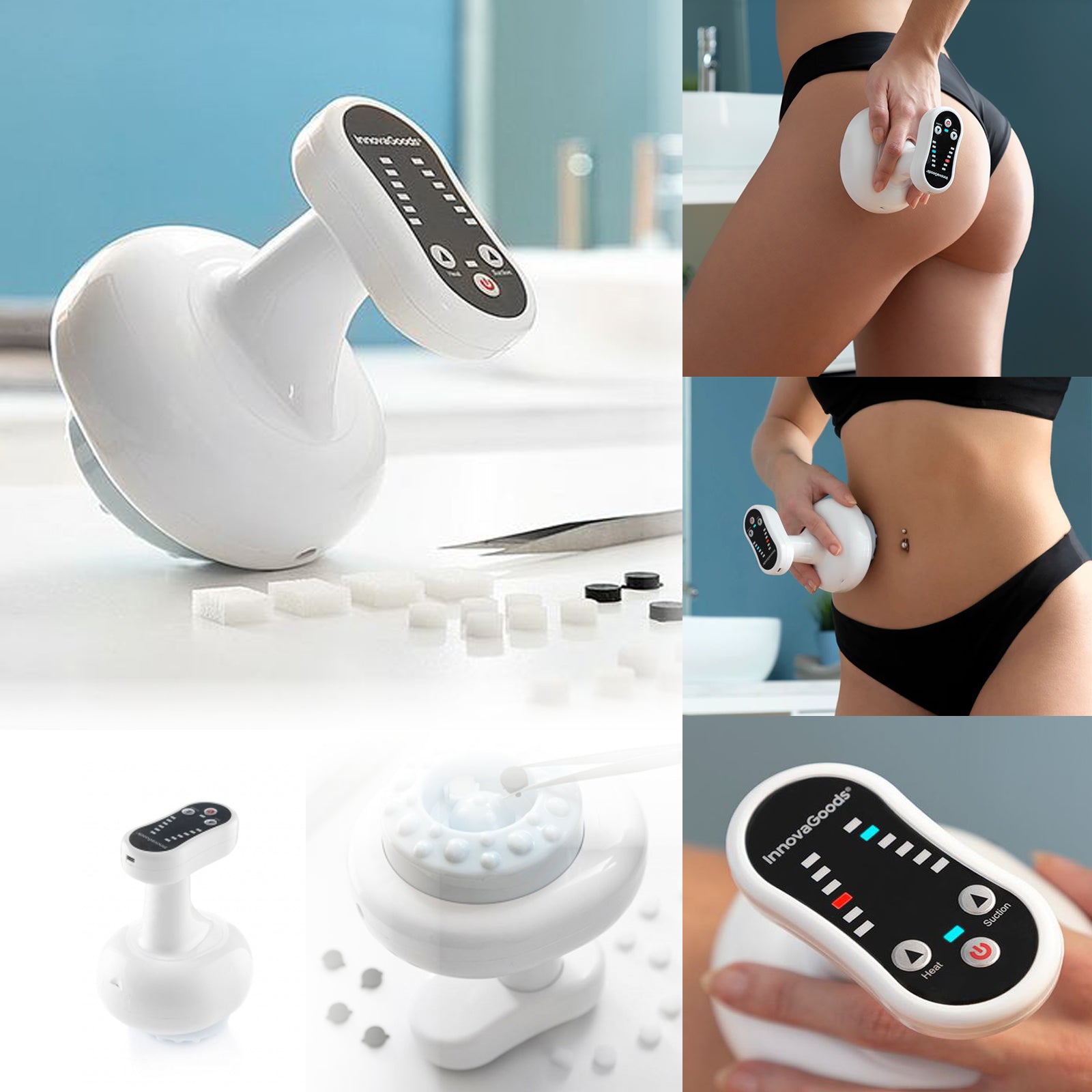Veľmi účinný masážny prístroj s odsávaním a zahrievaním proti celulitíde a ochabnutiu. Jeho práca je založená na technike vákuovej terapie s tepelným efektom na podporu lepšieho výsledku. Ergonomický, prenosný a nabíjateľný dizajn uľahčuje používanie, dokonale sa prispôsobí akejkoľvek oblasti tela a je oveľa pohodlnejší bez zástrčiek a káblov. Stačí ho pomaly a nepretržite posúvať po pokožke. Má niekoľko úrovní sania a ohrevu s kontrolkami a automatickým vypnutím. Ideálne pre nohy, zadok, pás, brucho a ruky. Mal by sa používať s olejmi alebo pleťovými vodami (nie sú súčasťou balenia) pre ľahšie rozotieranie na pokožku. Ľahko sa čistí a obsahuje extra dlhý kábel USB > micro USB, náhradné úchytky, kryty a umývateľné filtre, ktoré zabraňujú vniknutiu krémov a olejov do zariadenia a jeho poškodeniu.