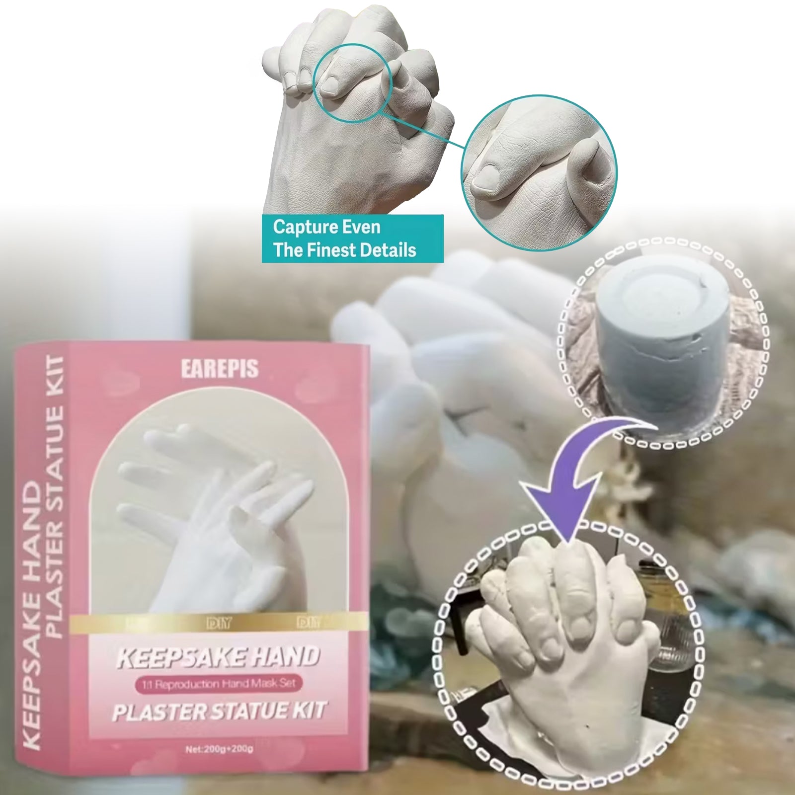 Stvorite vječnu uspomenu s voljenom osobom uz naš set za izradu gipsane skulpture ruku. Uhvatite trenutak bliskosti i pretvorite ga u umjetnost koja traje zauvijek. 🤍