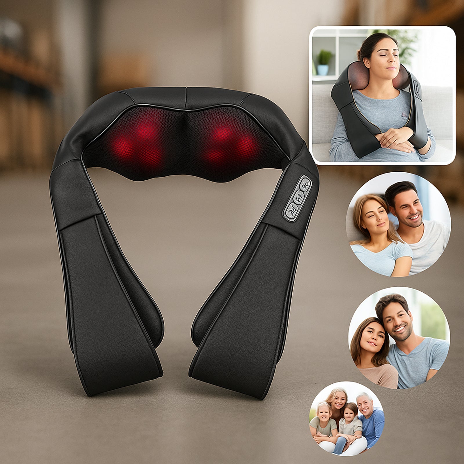 Opustite se bilo gdje i bilo kada uz ovaj višenamjenski masažer. Idealno za vrat, ramena, leđa, noge i stopala - s funkcijom grijanja 🔥 i rotacijom u oba smjera. Savršen za korištenje kod kuće 🏠, u uredu 💻 ili u autu 🚗.