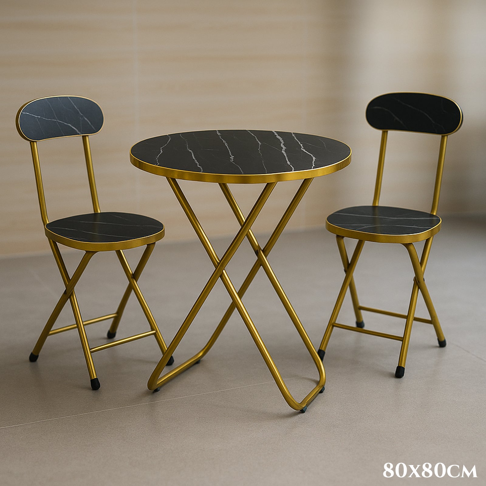Za balkon i terasu Efekt crnog mramora 2 sklopive stolice