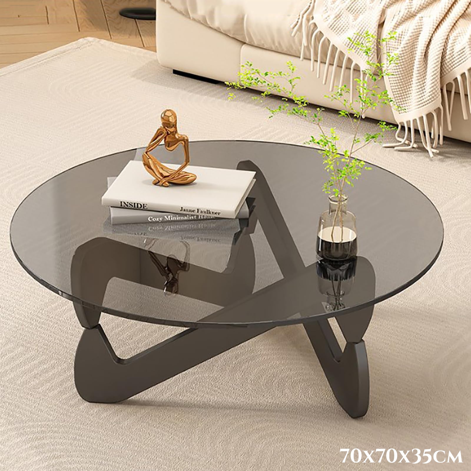 Stolić za kavu Black donosi suvremen, prozračan izgled zahvaljujući kombinaciji **okrugle staklene ploče** i **dinamične skulpturalne baze**. Minimalistički, a upečatljiv – savršeno se uklapa u moderne i luksuzne interijere.
