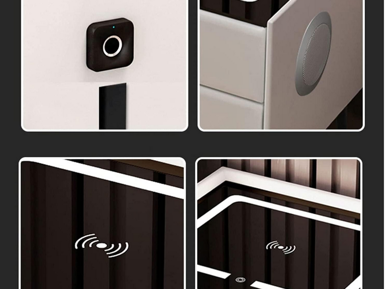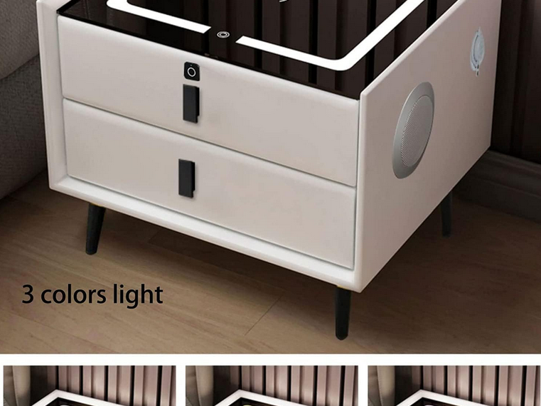 Moderan pametni noćni ormarić koji spaja dizajn i tehnologiju. Integrirano LED osvjetljenje, bežično punjenje telefona i praktične ladice čine ga savršenim dodatkom svakoj modernoj spavaćoj sobi.