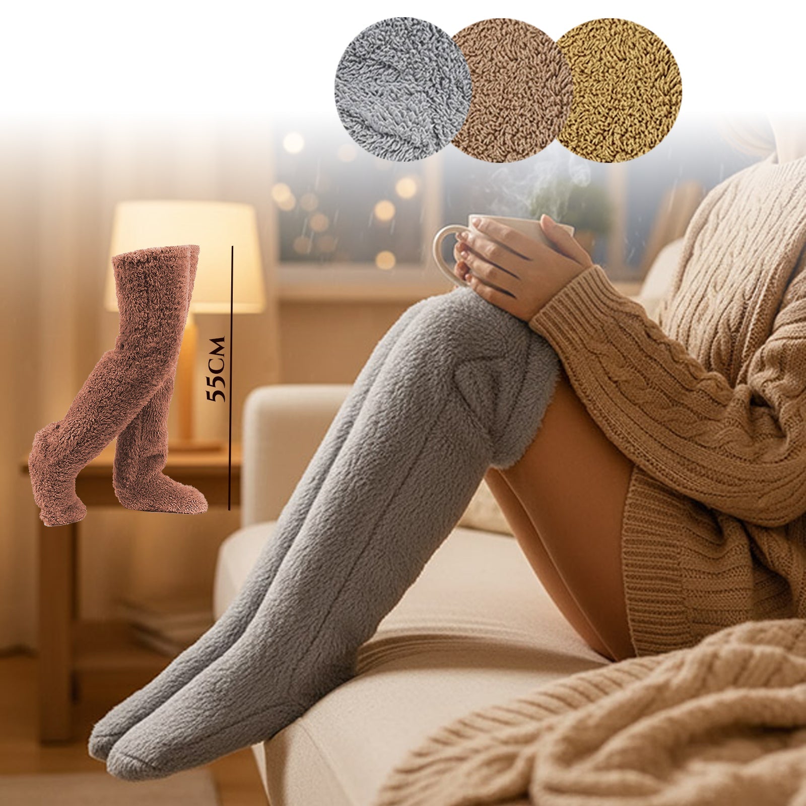 - ✔️ Dužina 55 cm – odlično griju cijelu nogu u zimskim danima.