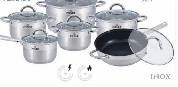 VYNIKAJÚCA SÚPRAVA HRNIEC ZILNER 18/10 Z NEREZOVEJ OCELE 12 DIELOV